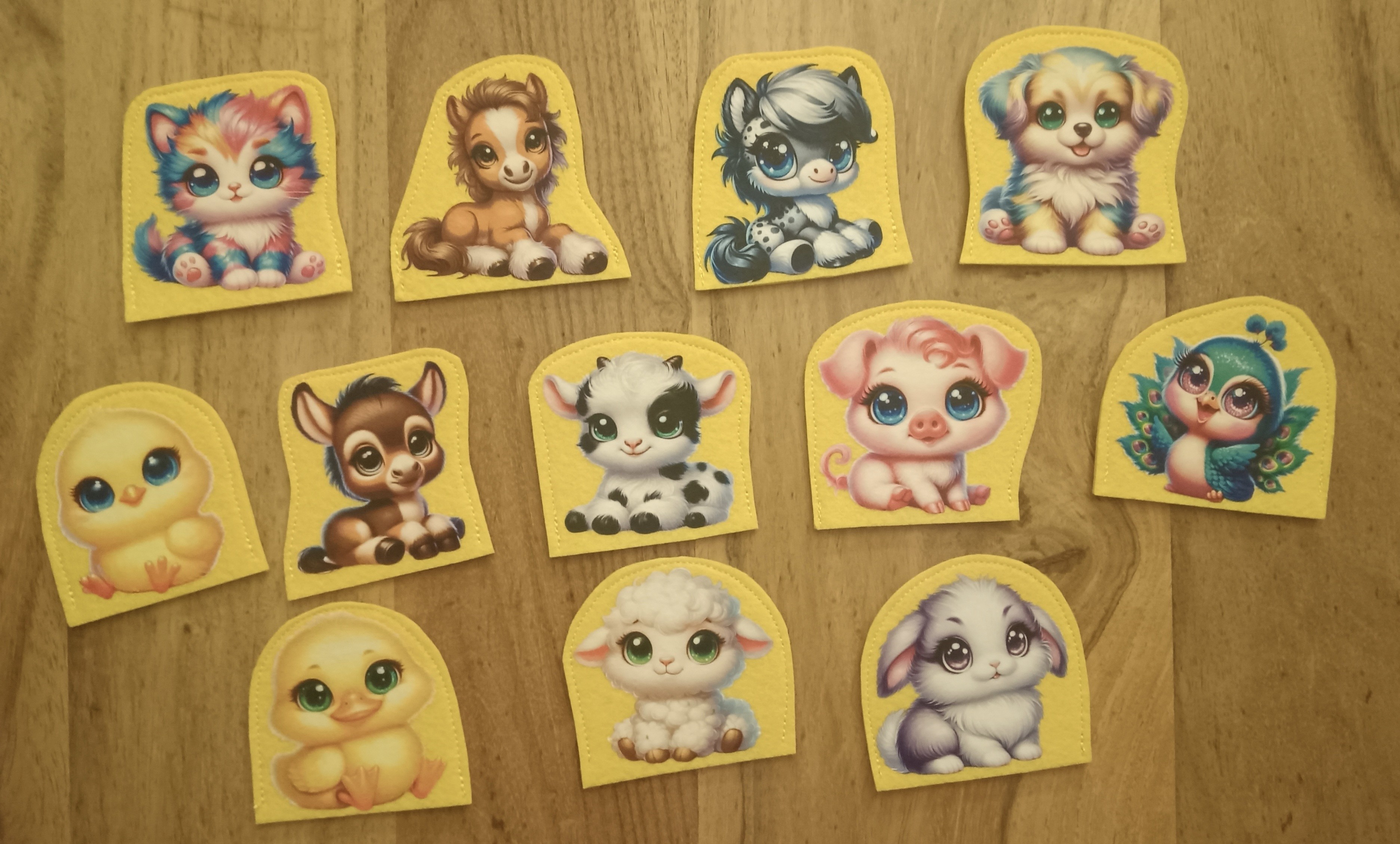 12 marionnettes à doigts thème ferme en feutrine normes jouets et visuel en dtf