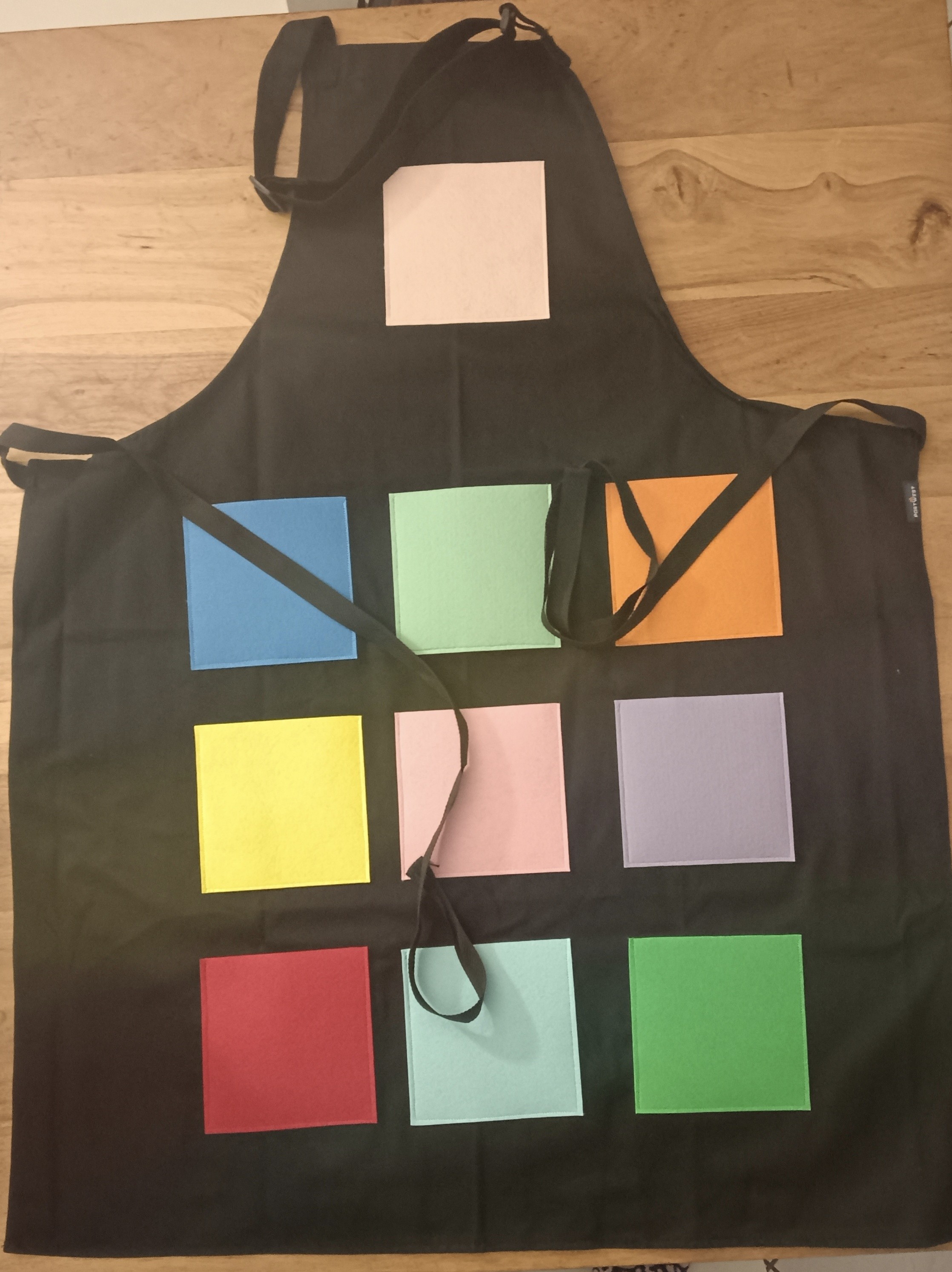 Tablier à comptines, avec 10 poches de 13x13cm en feutrine coréenne (ne bouloche pas et se déchire pas ).